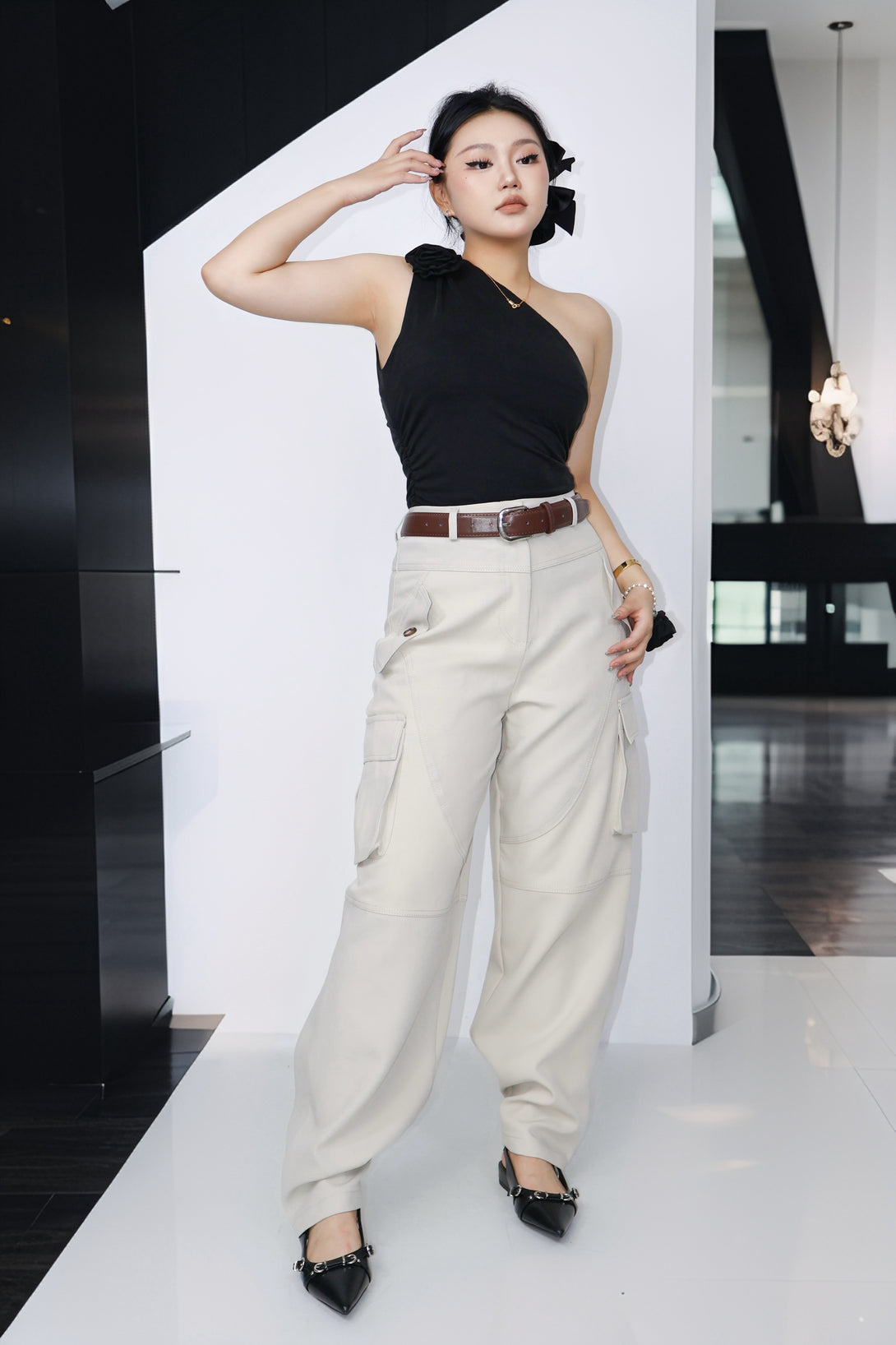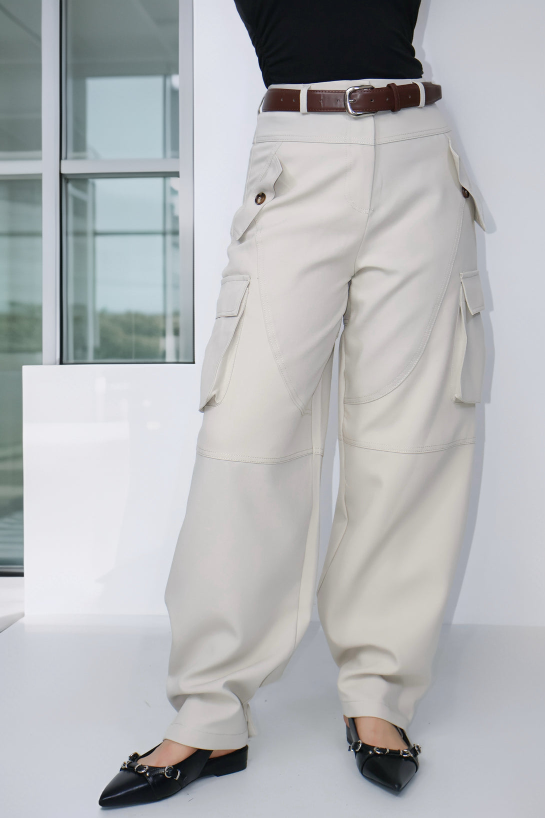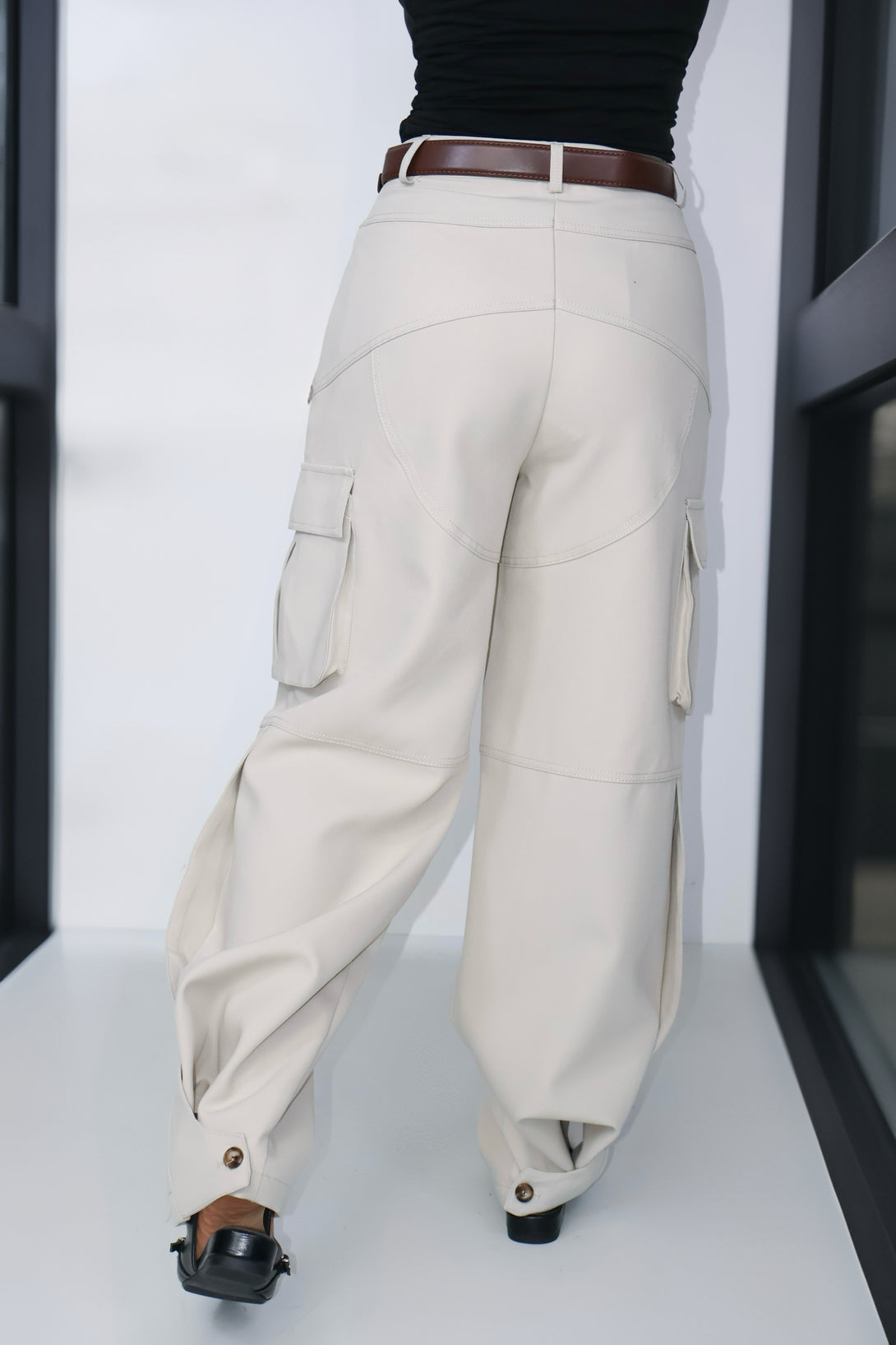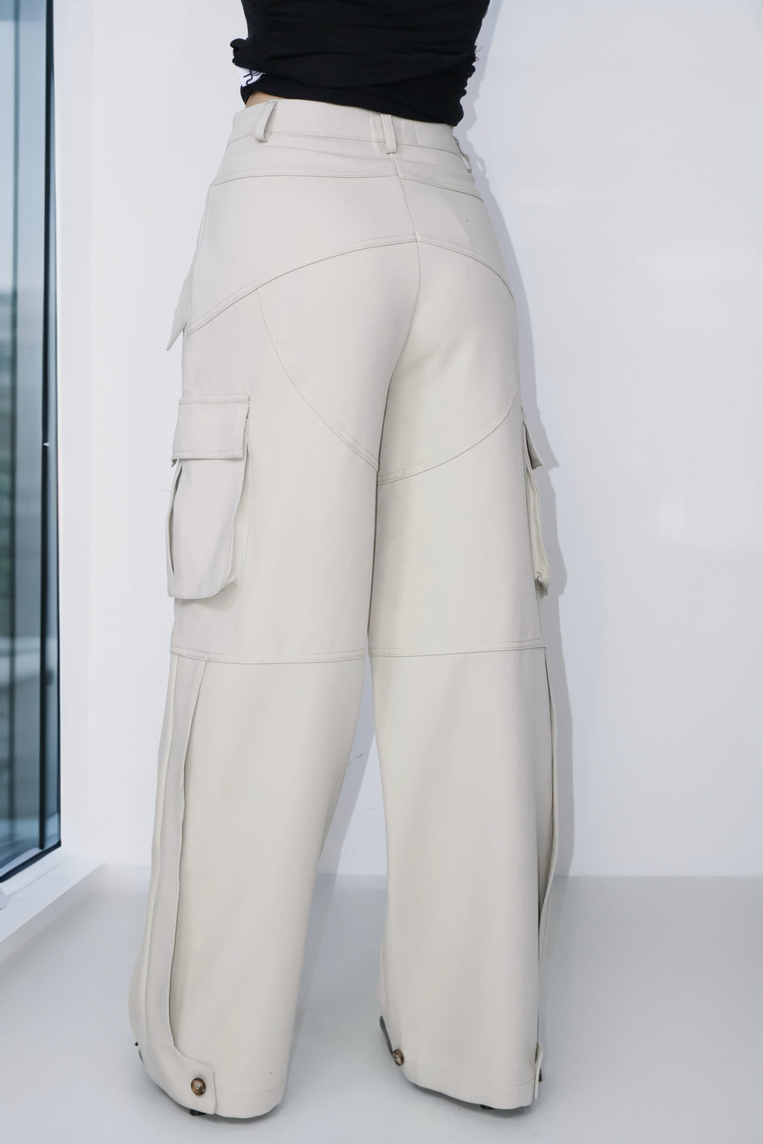 A reimagination of utilitarian edge — The Modulux Cargo Pants fuses functionality with sharp design through its sculpted panel cuts, oversized pockets, and adjustable button details. Crafted in a clean, structured silhouette, these pants offer a luxe take on everyday cargo wear. Whether styled polished or undone, it’s a statement piece made for the modern shapeshifter.